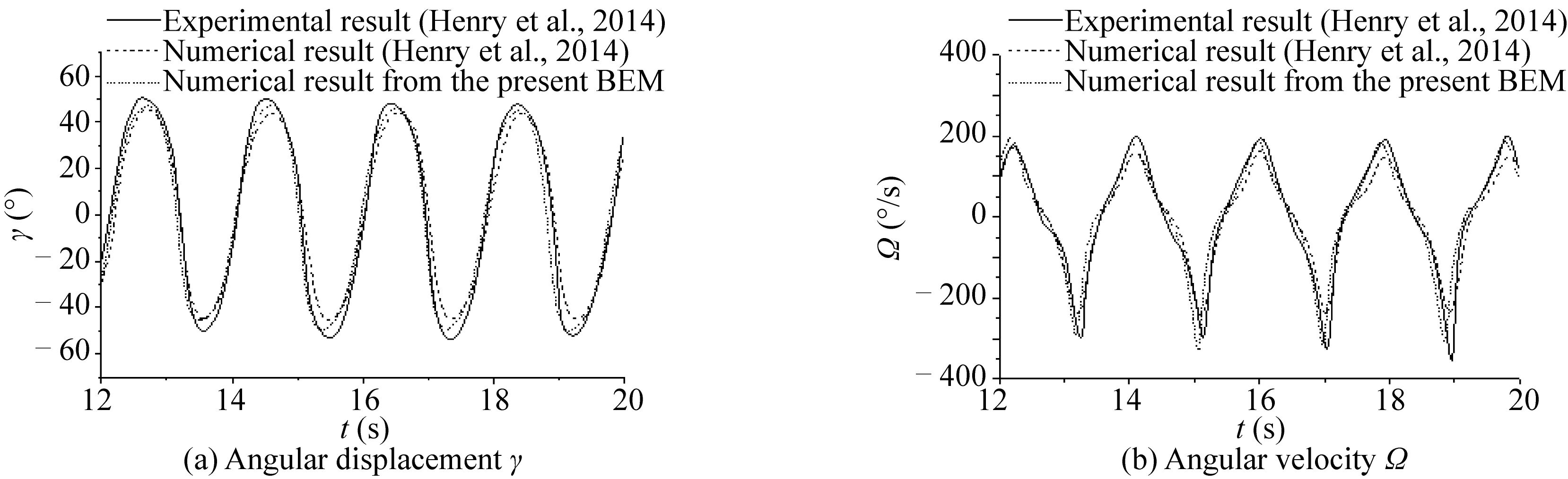 The hydrodynamic behaviour of an oscillating wave surge converter (OWSC) in large motion excited by nonlinear waves is investigated. The mechanism through which the wave energy is absorbed in the nonlinear system is analysed. The mathematical model used is based on the velocity potential theory together with the fully nonlinear boundary conditions on the moving body surface and deforming free surface. The problem is solved by the boundary element method. Numerical results are obtained to show how to adjust the mechanical properties of the OWSC to achieve the best efficiency in a given wave, together with the nonlinear effect of the wave height. Numerical results are also provided to show the behaviour of a given OWSC in waves of different frequencies and different heights.
