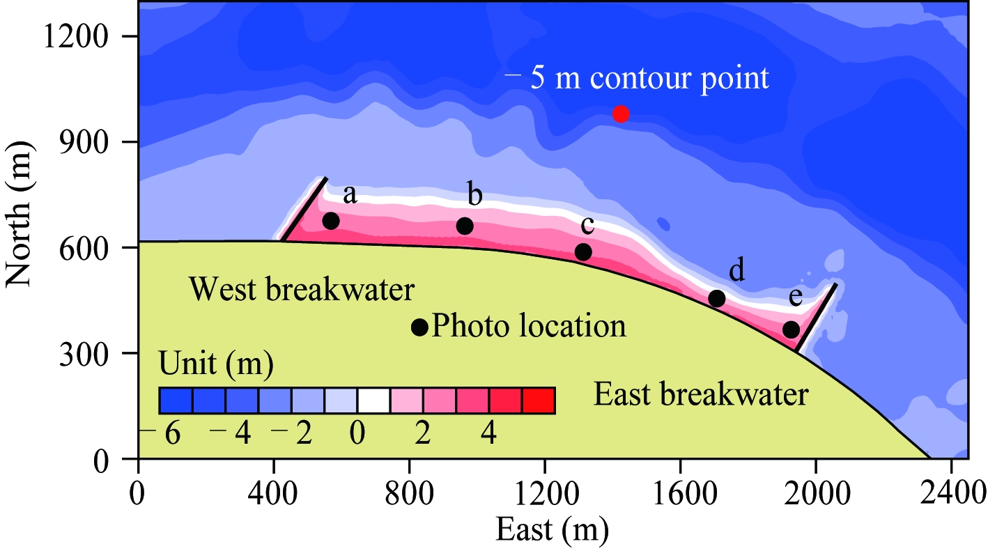 Interstitial flows in breakwater cores and seabeds are a key consideration in coastal and marine engineering designs and have a direct impact on their structural safety. In this paper, a unified fully coupled model for wave−permeable breakwater−porous seabed interactions is built based on an improved N−S equation. A numerical wave flume is constructed, and numerical studies are carried out by applying the finite difference method. In combination with a physical model test, the accuracy of the numerical simulation results is verified by comparing the calculated and measured values of wave height at measurement points and the seepage pressure within the breakwater and seabed. On this basis, the characteristics of the surrounding wave field and the internal flow field of the pore structure, as well as the evolution process of the fluctuating pore water pressure inside the breakwater and seabed, are further analyzed. The spatial distribution of the maximum fluctuating pore water pressure in the breakwater is compared between two cases by considering whether the seabed is permeable, and then the effect of seabed permeability on the dynamic pore water pressure in the breakwater is clarified. This study attempts to provide a reference for breakwater design and the protection of nearby seabeds.