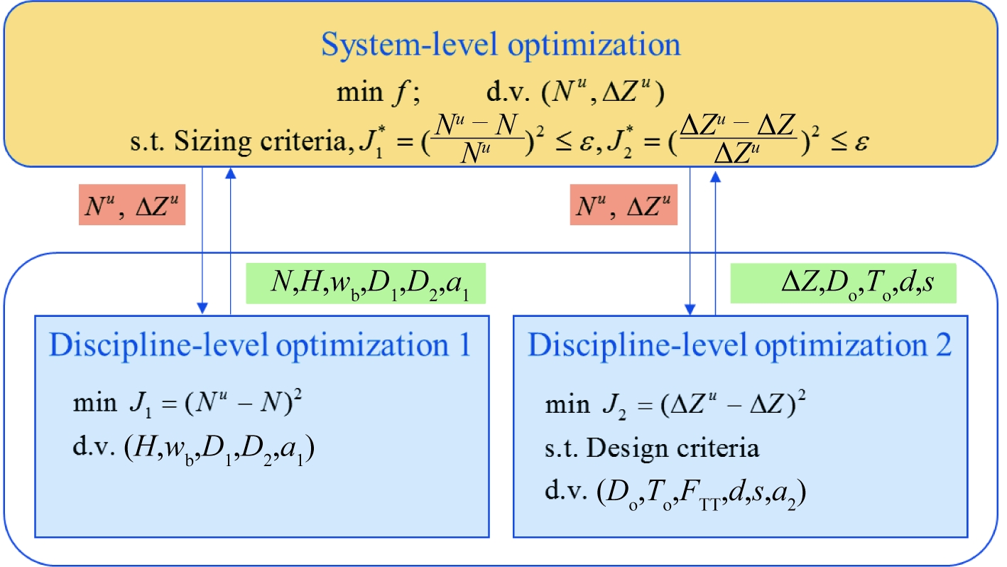 The innovative Next Generation Subsea Production System (NextGen SPS) concept is a newly proposed petroleum development solution in ultra-deep water areas. The definition of NextGen SPS involves several disciplines, which makes the design process difficult. In this paper, the definition of NextGen SPS is modeled as an uncertain multidisciplinary design optimization (MDO) problem. The deterministic optimization model is formulated, and three concerning disciplines—cost calculation, hydrodynamic analysis and global performance analysis are presented. Surrogate model technique is applied in the latter two disciplines. Collaborative optimization (CO) architecture is utilized to organize the concerning disciplines. A deterministic CO framework with two discipline-level optimizations is proposed firstly. Then the uncertainties of design parameters and surrogate models are incorporated by using interval method, and uncertain CO frameworks with triple loop and double loop optimization structure are established respectively. The optimization results illustrate that, although the deterministic MDO result achieves higher reduction in objective function than the uncertain MDO result, the latter is more reliable than the former.