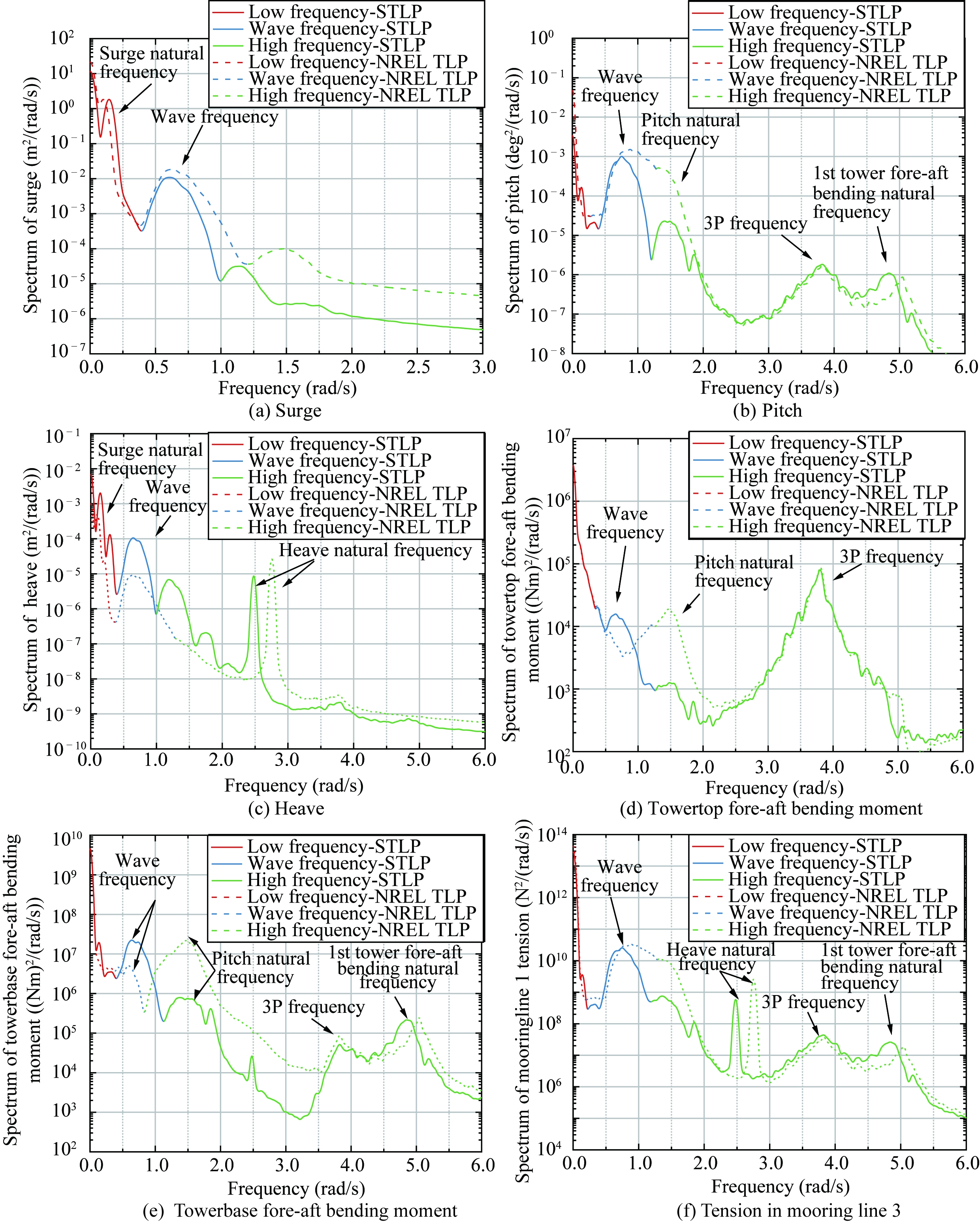 In connection with the design of floating wind turbines, stochastic dynamic analysis is a critical task considering nonlinear wind and wave forces. To study the random structural responses of a newly designed submerged tension leg platform (STLP) wind turbine, a set of dynamic simulations and comparison analysis with the MIT/NREL TLP wind turbine are carried out. The signal filter method is used to evaluate the mean and standard deviations of the structural response. Furthermore, the extreme responses are estimated by using the mean upcrossing rate method. The fatigue damages for blade root, tower, and mooring line are also studied according to the simulated time-series. The results and comparison analysis show that the STLP gives small surge and pitch motions and mooring line tensions in operational sea states due to the small water-plane area. Additionally, in severe sea states, the STLP gives lower extreme values of platform pitch, slightly larger surge and heave motions and better towerbase and mooring line fatigue performances than those of the MIT/NREL TLP. It is found that the STLP wind turbine has good performances in structural responses and could be a potential type for exploiting the wind resources located in deep waters.