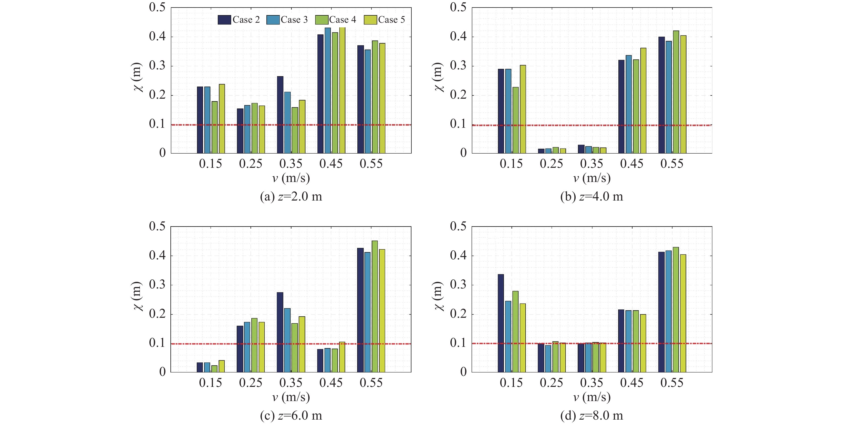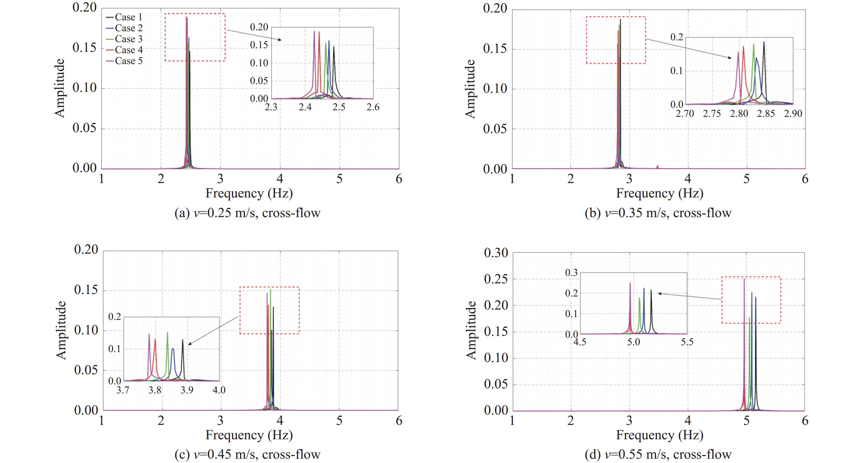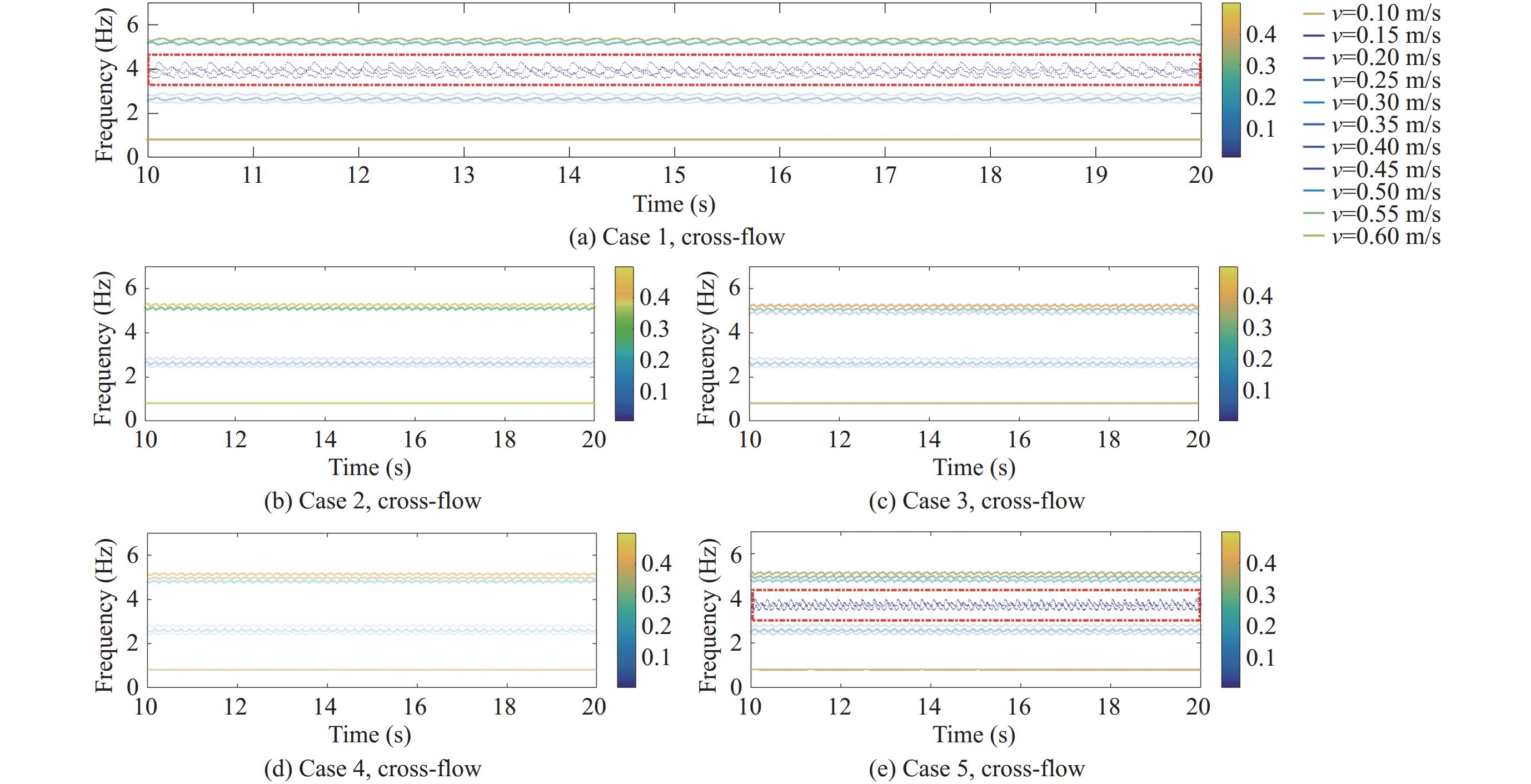 A deep-sea mining riser is a crucial component of the system used to lift seafloor mineral resources to the vessel. It is prone to damage and failure because of harsh environmental conditions and internal fluid erosion. Furthermore, damage can impact the response characteristics of the riser, but varying environmental loadings easily mask it. Thus, distinguishing between riser damage and environmental effects poses a considerable challenge. To address this issue, a cantilevered model is created for a deep-sea mining riser via the concentrated mass method, and a time-domain analytical strategy is developed. The vortex-induced vibration (VIV) response characteristics of the riser are initially examined, considering various damage conditions and flow velocities. The study results revealed four primary observations: (a) effective tension can serve as a reliable indicator for identifying damage at lower velocities; (b) there are noticeable differences in displacement between the healthy and damaged risers in the in-line direction rather than the cross-flow direction; (c) frequency characteristics can more effectively distinguish the damage conditions at high flow velocities, with the mean square frequency and frequency variance being more effective than the centroid frequency and root variance frequency; (d) displacement differences are more sensitive to damage occurring near the top and bottom of the riser, while both velocity variations and structural damage can influence displacements, especially in regions between modal nodes. The vibrational behavior and damage indicators are clarified for structural health monitoring of deep-sea mining risers during lifting operations.