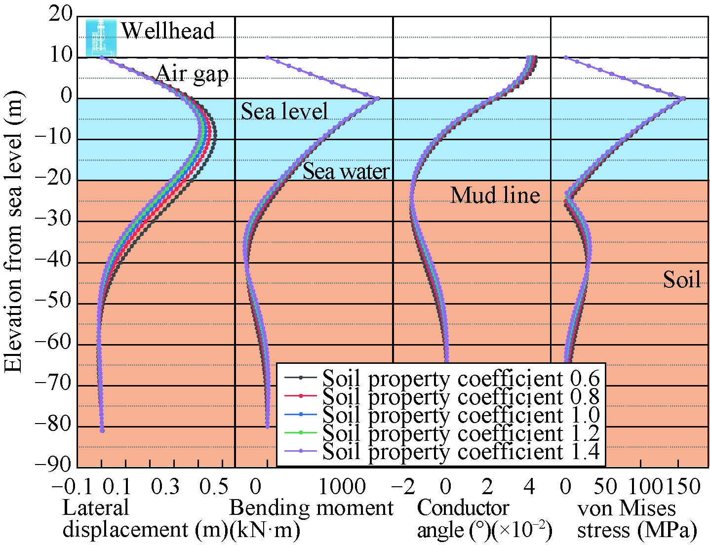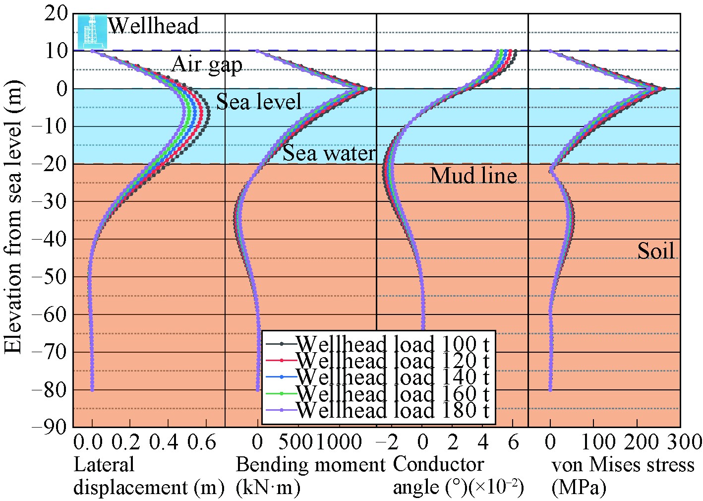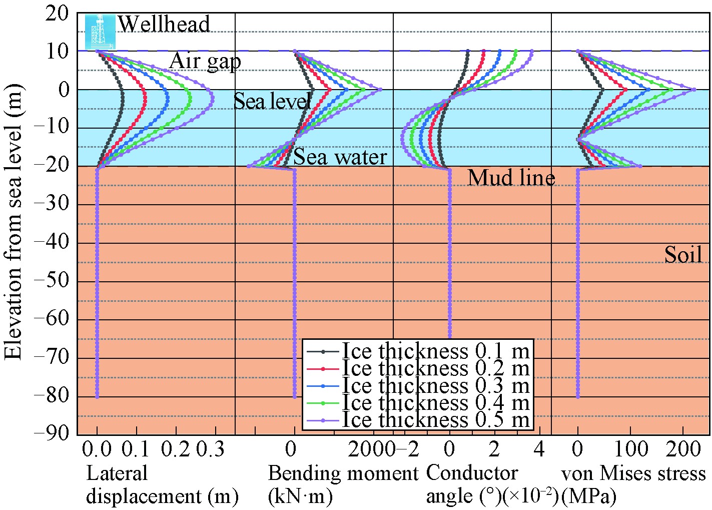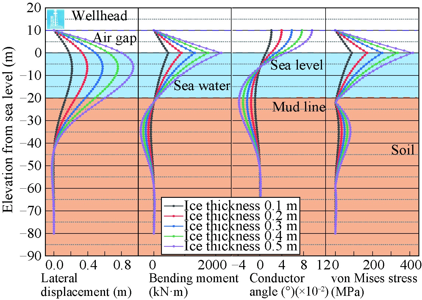 With increasing water depth, marine drilling conductors exhibit higher slenderness ratios, significantly reducing their resistance to environmental loads in Arctic waters. These conductors, when subjected to combined wind, current, and ice loads, may experience substantial horizontal displacements and bending moments, potentially compromising offshore operational safety and wellhead stability. Additionally, soil disturbance near the mudline diminishes the conductor’s bearing capacity, potentially rendering it inadequate for wellhead support and increasing operational risks. This study introduces a static analysis model based on plastic hinge theory to evaluate conductor survivability. The conductor analysis divides the structure into three segments: above waterline, submerged, and embedded below mudline. An idealized elastic-plastic p-y curve model characterizes soil behavior beneath the mudline, while the finite difference method (FDM) analyzes the conductor’s mechanical response under complex pile-head boundary conditions. Numerical simulations using ABAQUS validate the plastic hinge approach against conventional methods, confirming its accuracy in predicting structural performance. These results provide valuable insights for optimizing installation depths and bearing capacity designs of marine drilling conductors in ice-prone regions.