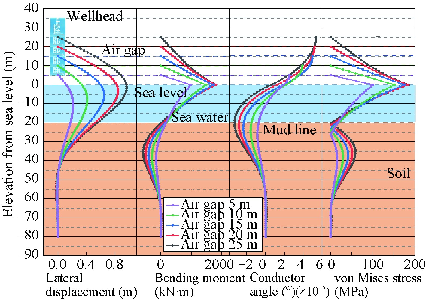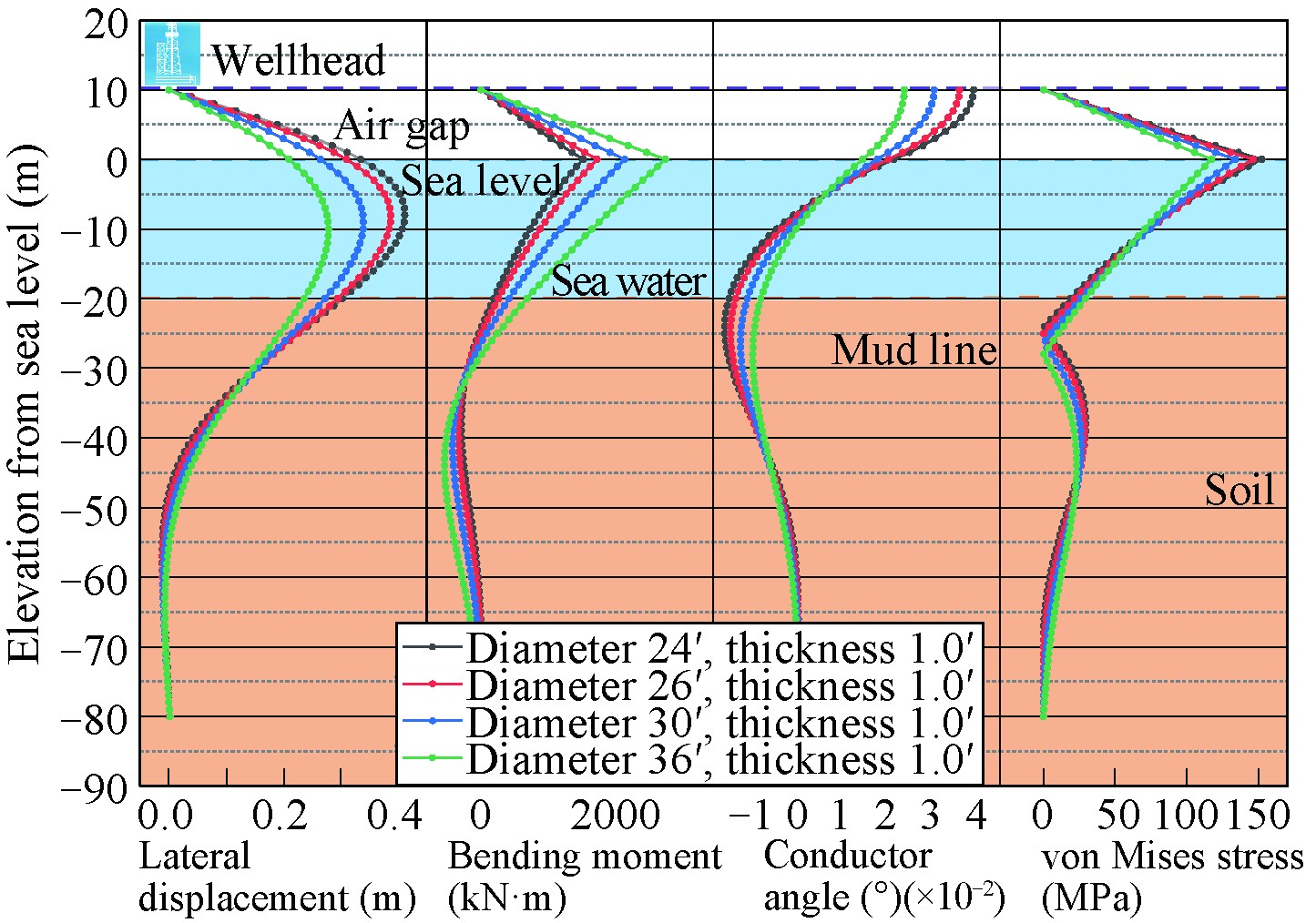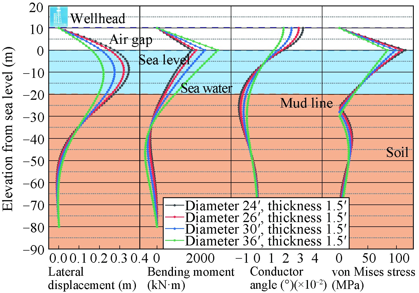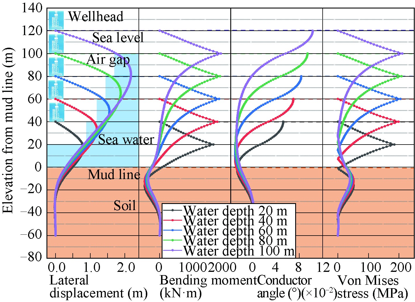 With increasing water depth, marine drilling conductors exhibit higher slenderness ratios, significantly reducing their resistance to environmental loads in Arctic waters. These conductors, when subjected to combined wind, current, and ice loads, may experience substantial horizontal displacements and bending moments, potentially compromising offshore operational safety and wellhead stability. Additionally, soil disturbance near the mudline diminishes the conductor’s bearing capacity, potentially rendering it inadequate for wellhead support and increasing operational risks. This study introduces a static analysis model based on plastic hinge theory to evaluate conductor survivability. The conductor analysis divides the structure into three segments: above waterline, submerged, and embedded below mudline. An idealized elastic-plastic p-y curve model characterizes soil behavior beneath the mudline, while the finite difference method (FDM) analyzes the conductor’s mechanical response under complex pile-head boundary conditions. Numerical simulations using ABAQUS validate the plastic hinge approach against conventional methods, confirming its accuracy in predicting structural performance. These results provide valuable insights for optimizing installation depths and bearing capacity designs of marine drilling conductors in ice-prone regions.