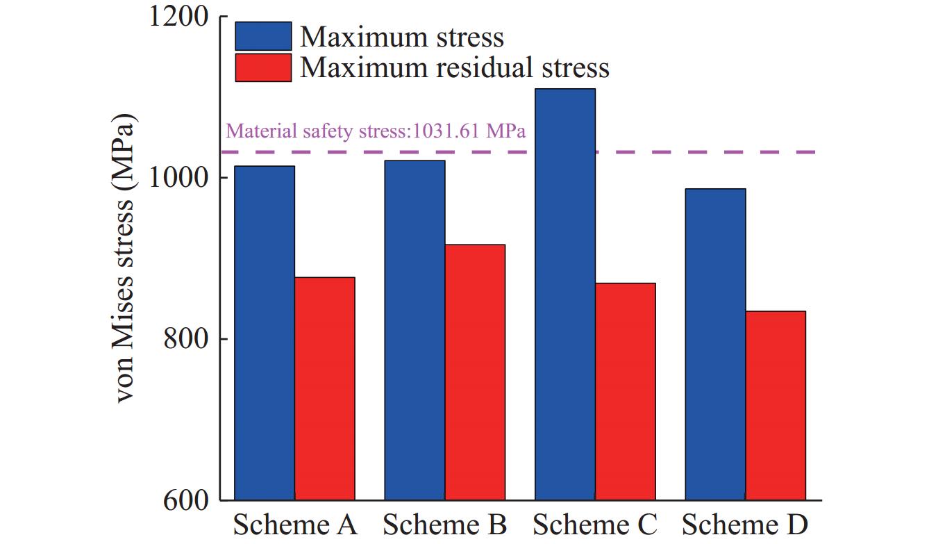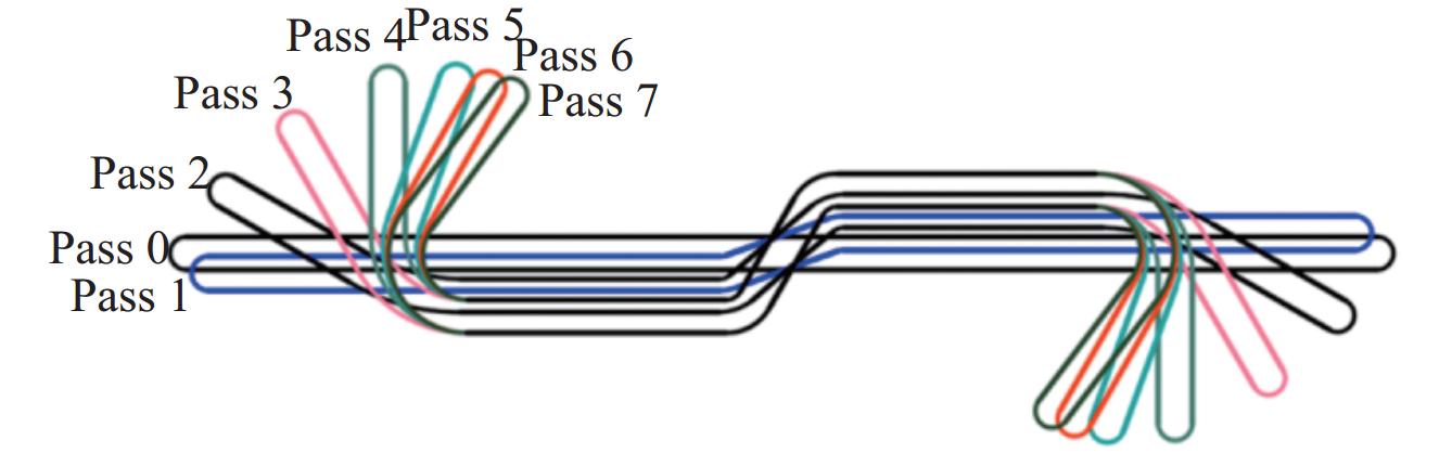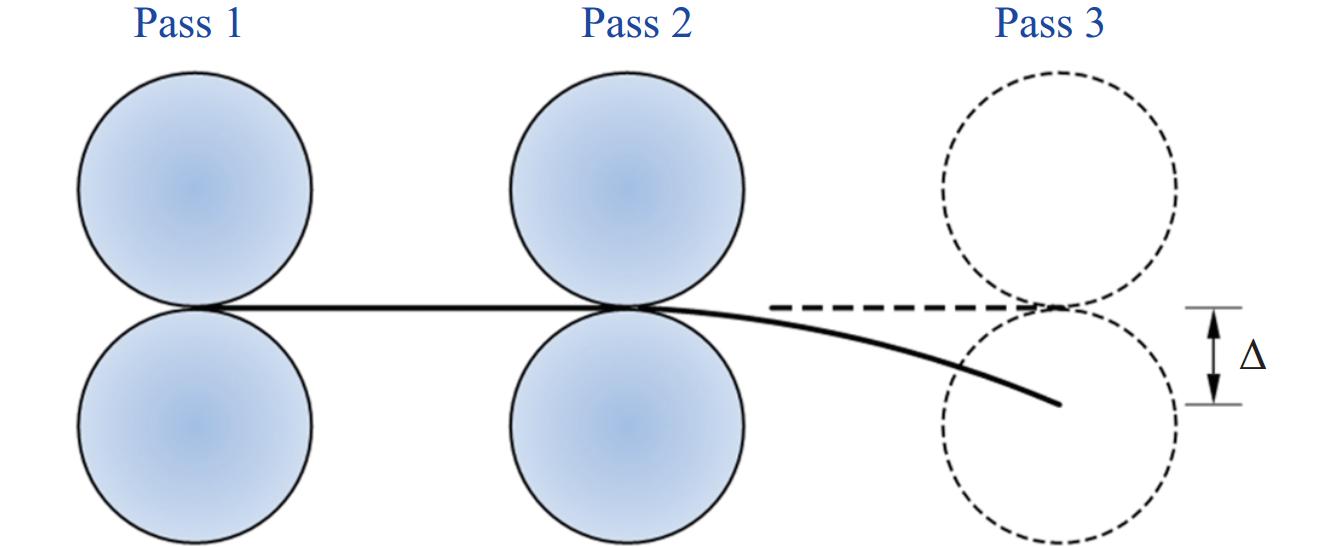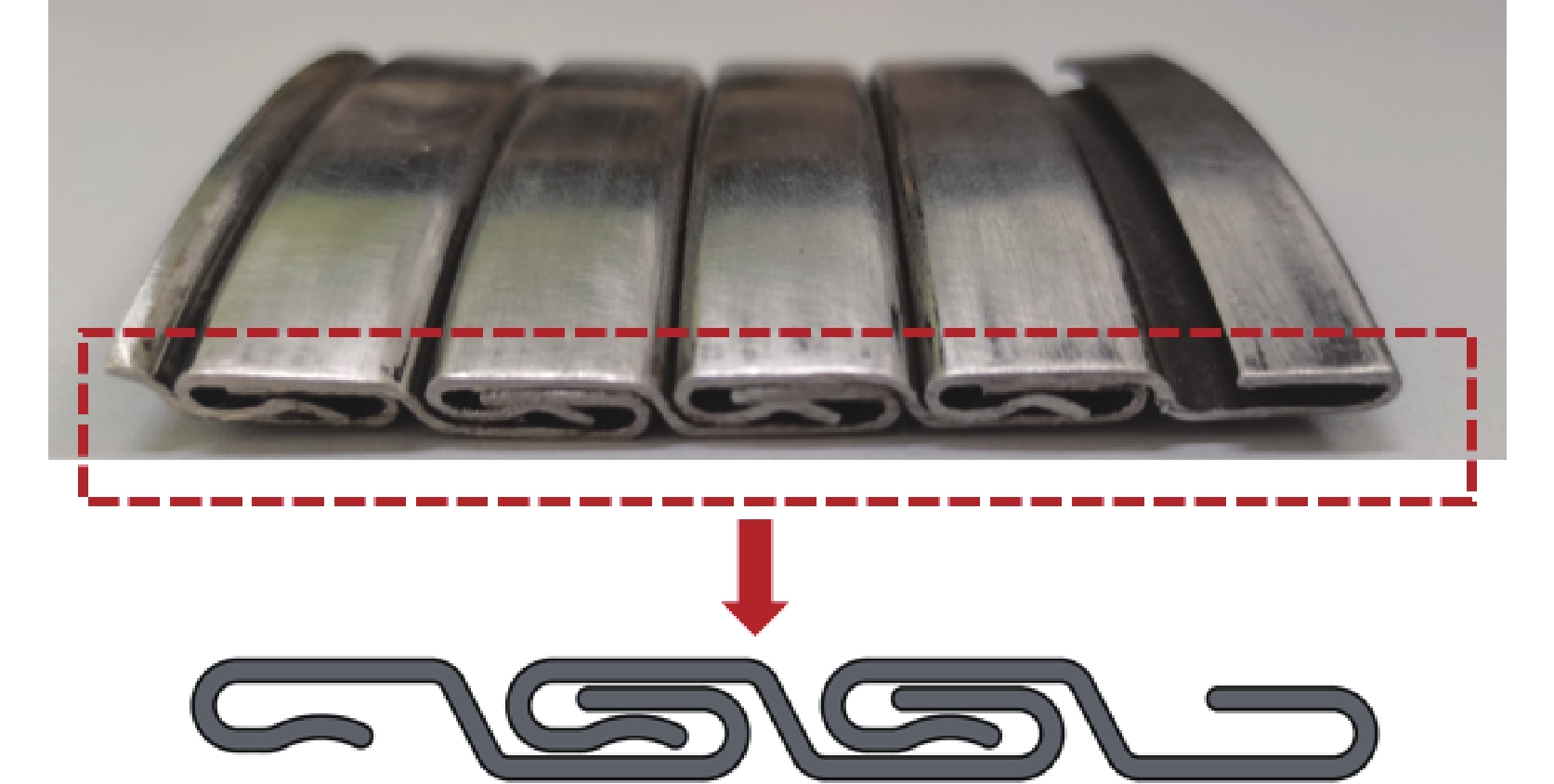 The carcass layer is the innermost structure of flexible marine risers and is responsible for resisting external pressure. It has an “S” section with a spiral interlocking feature. After the multi-pass roll forming of a flat steel strip, a carcass layer is formed by lock forming. During roll forming, the steel strip undergoes significant plastic deformation, and its local area accumulates residual stress owing to multiple loading and unloading cycles. These phenomena complicate the design and analysis of the carcass layer multi-pass roll forming (CLMRF) process and cause issues in the carcass layer during manufacturing, such as strip fracture and low forming quality. Thus, herein, CLMRF was investigated to clarify the stress distribution, and a parameter analysis was performed. First, the CLMRF process was designed on the basis of classical roll-forming design theory. Second, a finite element model was established, and CLMRF was simulated. Third, the distributions of the forming stress and residual stress of the strip during CLMRF were investigated. Finally, the influences of the strip thickness, roll gap, roll distance, and angular increment were investigated. The conclusions of this study can be used to provide technical guidance in the manufacturing of flexible risers.