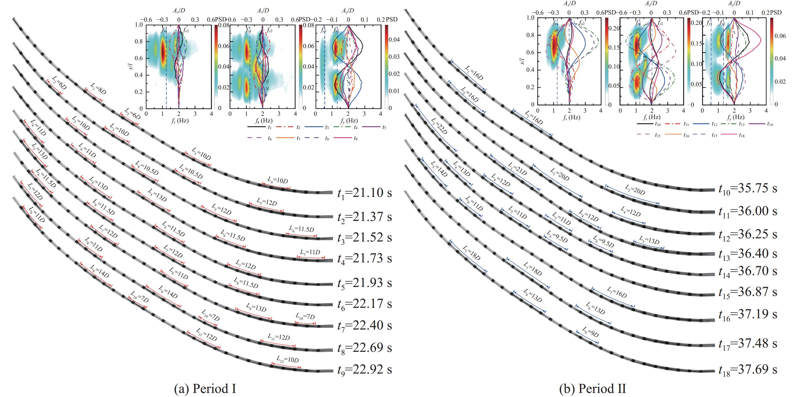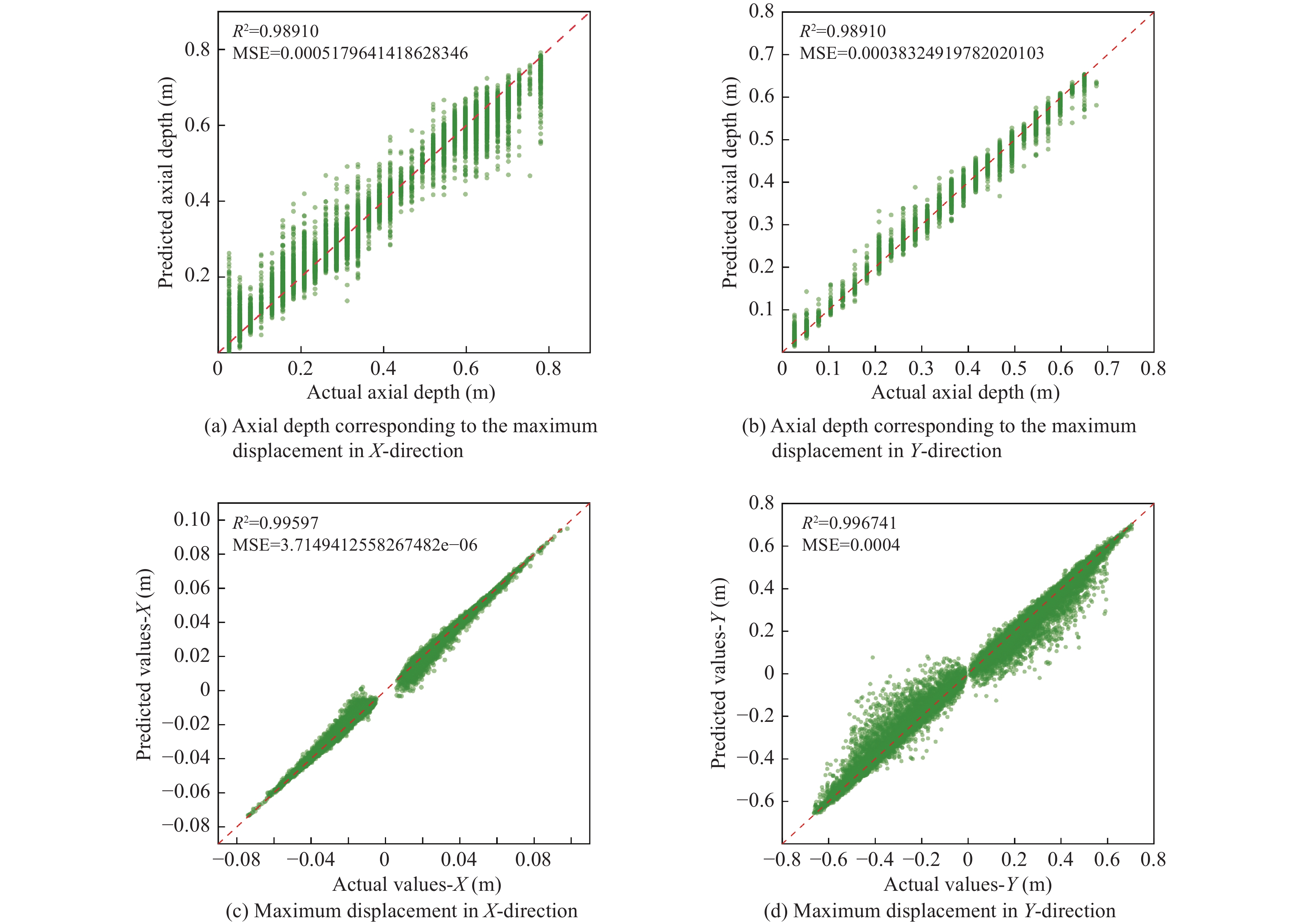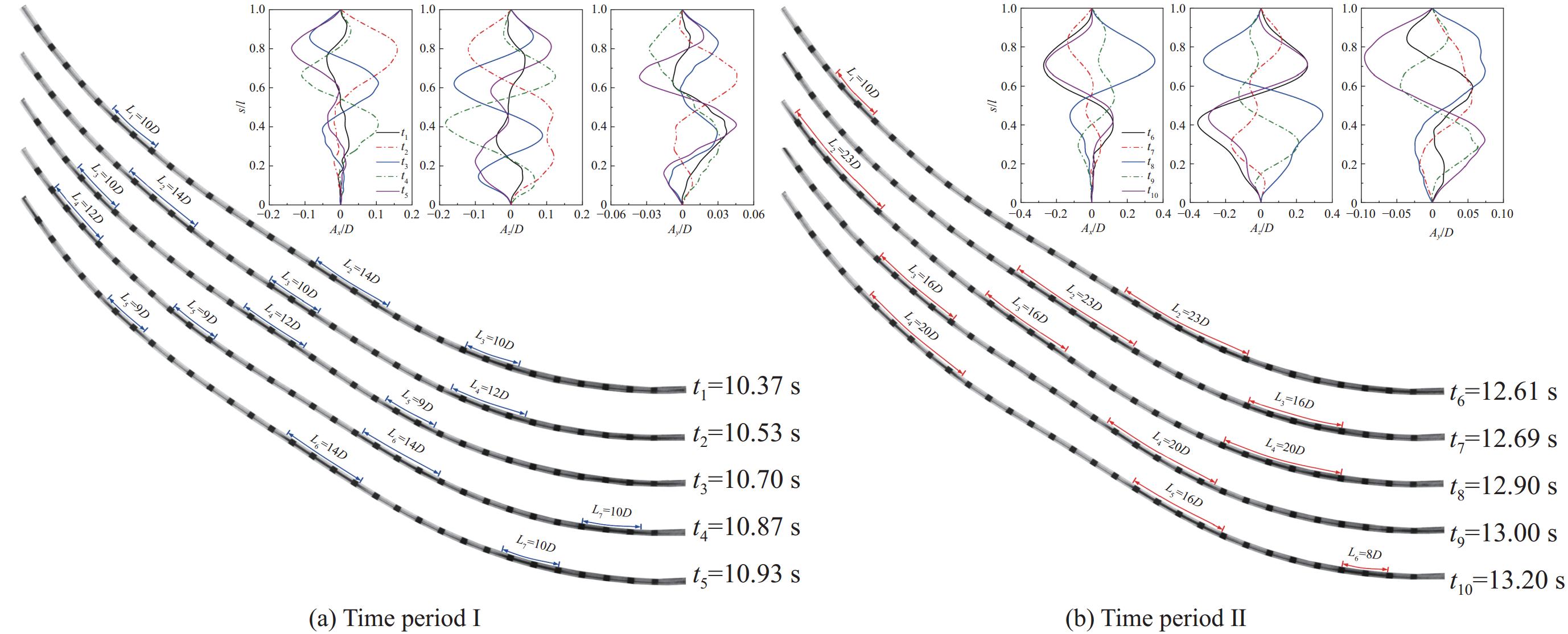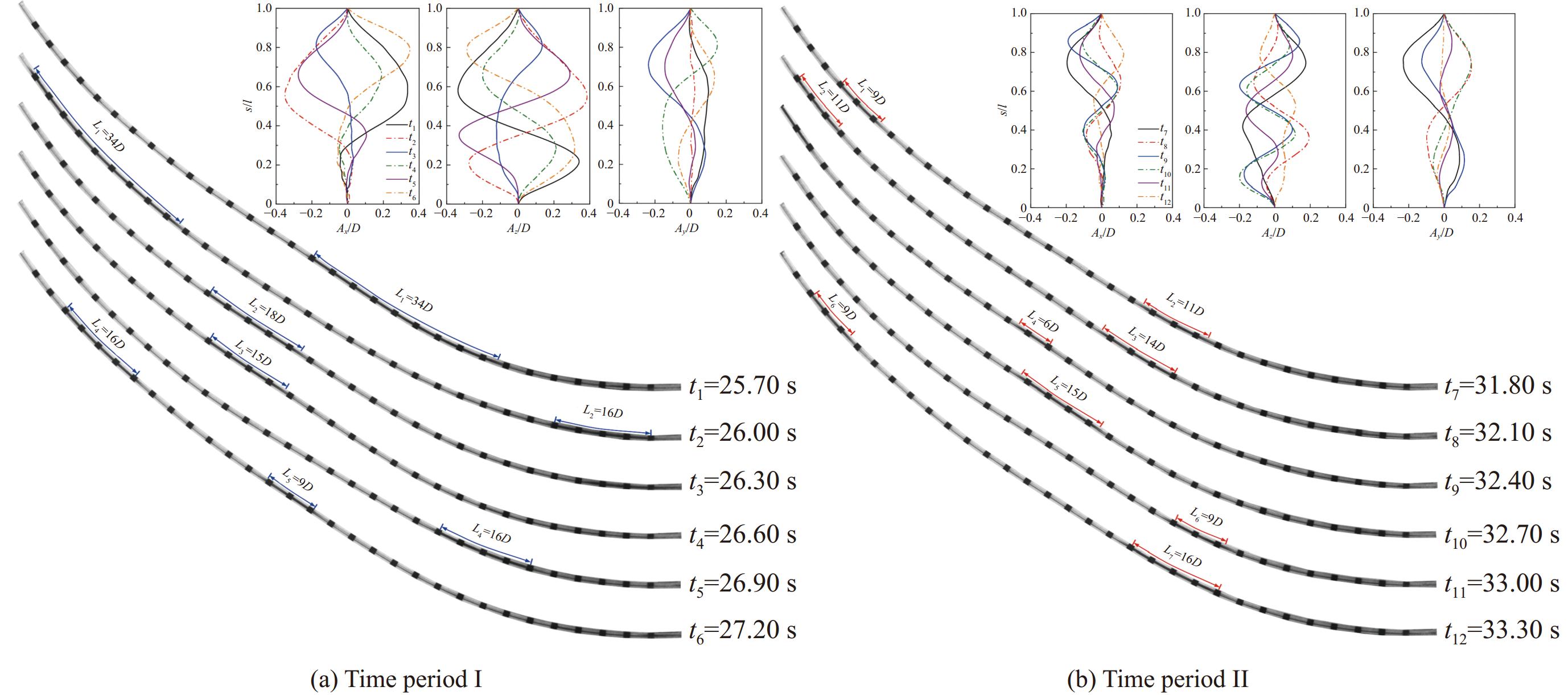 Mitigating vortex-induced vibrations (VIV) in flexible risers represents a critical concern in offshore oil and gas production, considering its potential impact on operational safety and efficiency. The accurate prediction of displacement and position of VIV in flexible risers remains challenging under actual marine conditions. This study presents a data-driven model for riser displacement prediction that corresponds to field conditions. Experimental data analysis reveals that the XGBoost algorithm predicts the maximum displacement and position with superior accuracy compared with Support vector regression (SVR), considering both computational efficiency and precision. Platform displacement in the Y-direction demonstrates a significant positive correlation with both axial depth and maximum displacement magnitude. The fourth point displacement exhibits the highest contribution to model prediction outcomes, showing a positive influence on maximum displacement while negatively affecting the axial depth of maximum displacement. Platform displacement in the X- and Y-directions exhibits competitive effects on both the riser’s maximum displacement and its axial depth. Through the implementation of XGBoost algorithm and SHapley Additive exPlanation (SHAP) analysis, the model effectively estimates the riser’s maximum displacement and its precise location. This data-driven approach achieves predictions using minimal, readily available data points, enhancing its practical field applications and demonstrating clear relevance to academic and professional communities.