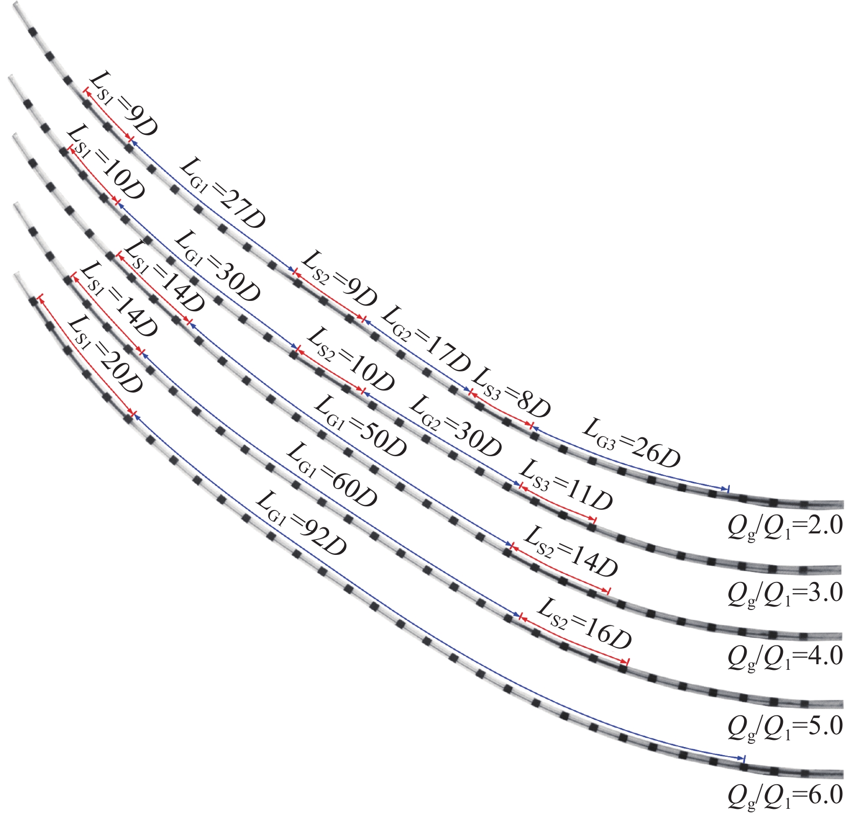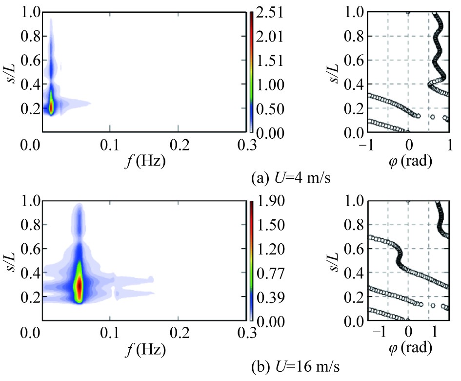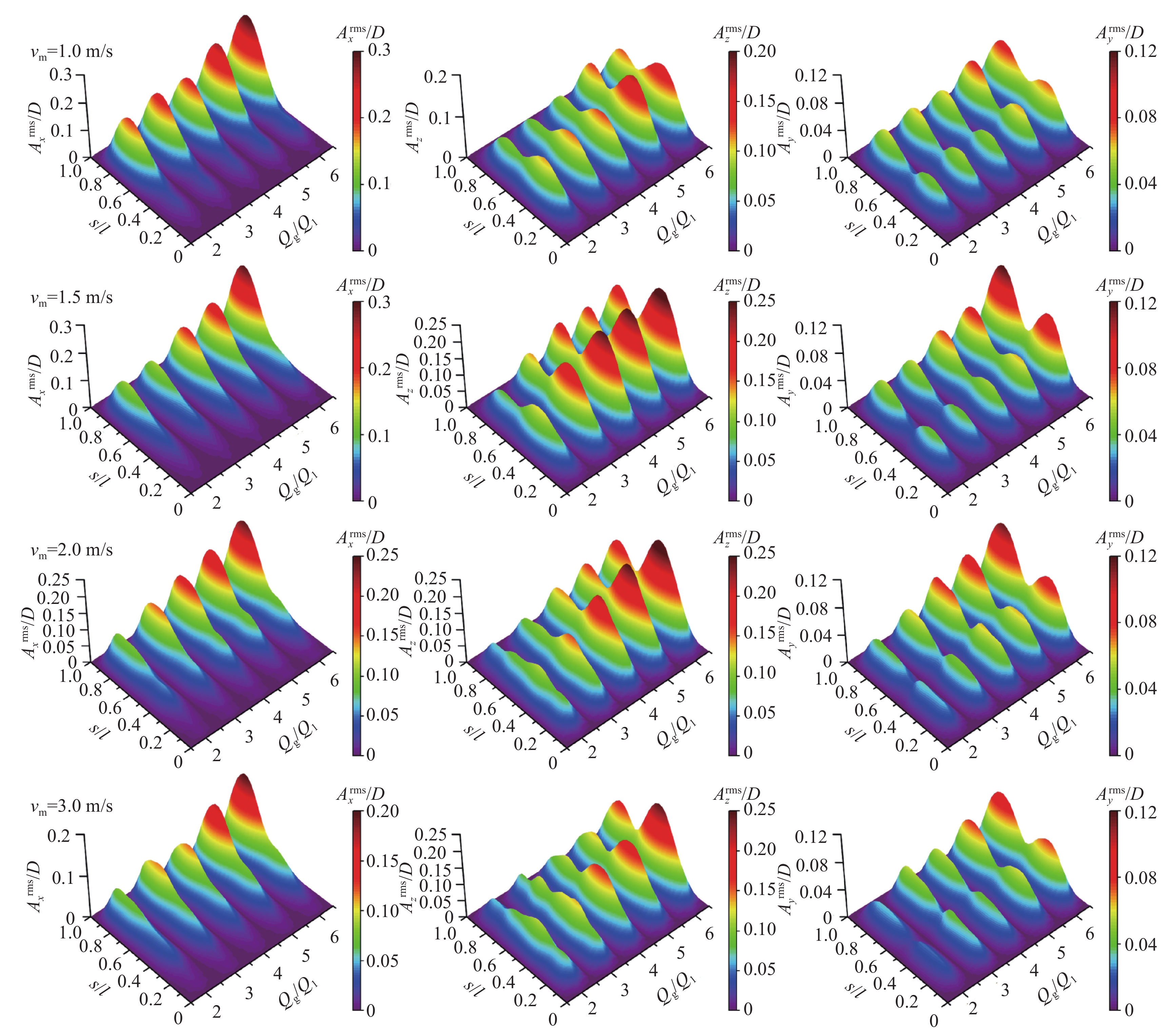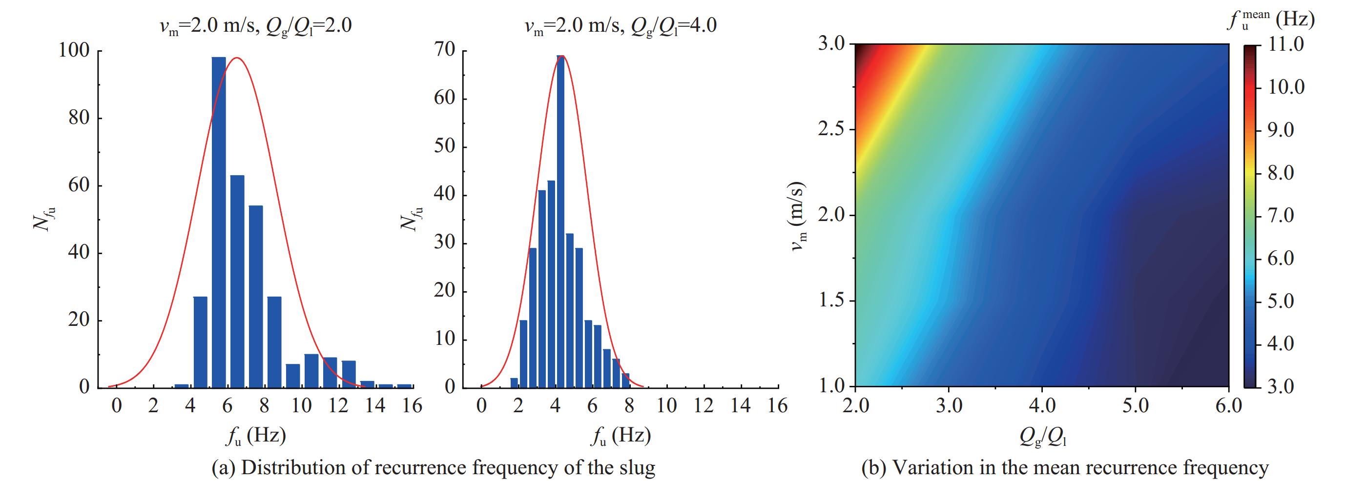 An experimental analysis of the slug-induced vibration (SIV) of a flexible catenary riser with an aspect ratio of 130 is reported in this work. The vibration responses and internal slug flow details at different gas-liquid ratios (Qg/Ql) and mixture velocities (vm) are non-intrusively and simultaneously captured by high-speed cameras. Both the in-plane and out-of-plane responses of the catenary riser are excited in all considered cases. The slug flow characteristics, including translational velocities, slug lengths, recurrence frequencies, and pressure variations, are analyzed and discussed, as are the dynamic responses of the riser in terms of the amplitudes, space-varying frequency, and modal weight. The dominant modal response based on the root-mean-square amplitude profiles does not match that based on the dominant frequency. Three mode switching types are identified based on the RMS amplitude profiles and the dominant frequency. When vm is small, no mode switching (NMS) is observed in either the in-plane or out-of-plane responses. For mode switching I (MS I), the switching between the first and second modes in the in-plane response is induced by slug flow with different recurrence frequencies in cases of large Qg/Ql. However, there is no mode switching in the out-of-plane response. The switching between the first and third modes for the in-plane response and the second and fourth modes for the out-of-plane response (MS II) occurs in cases of relatively high vm and low Qg/Ql.