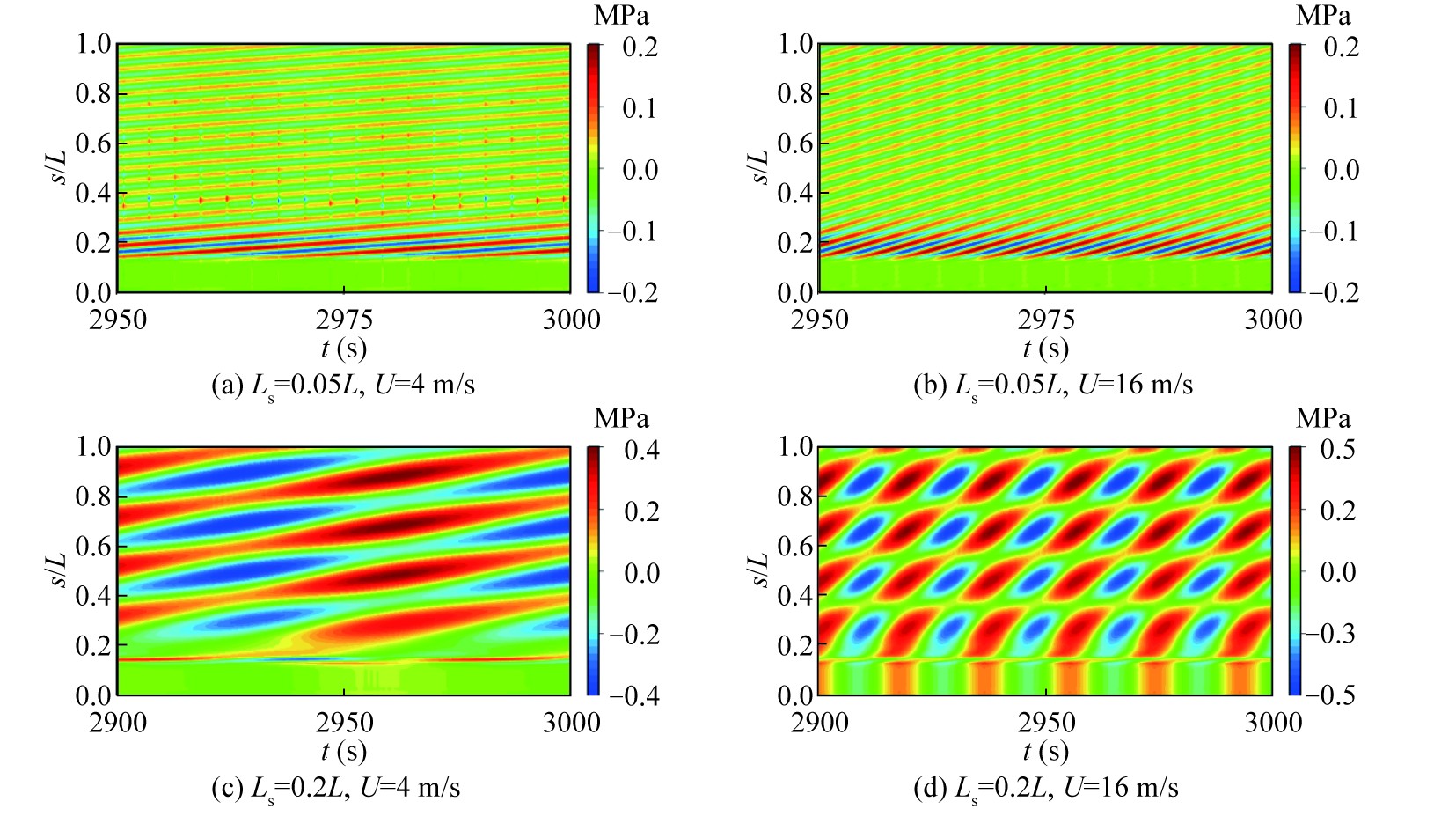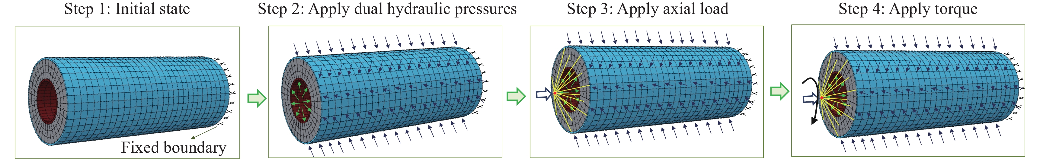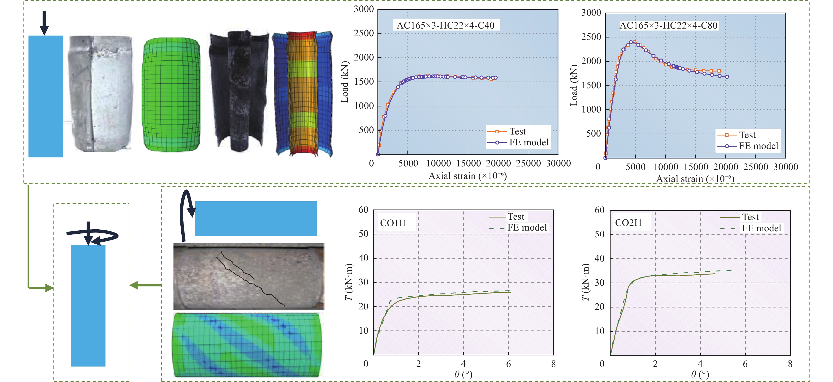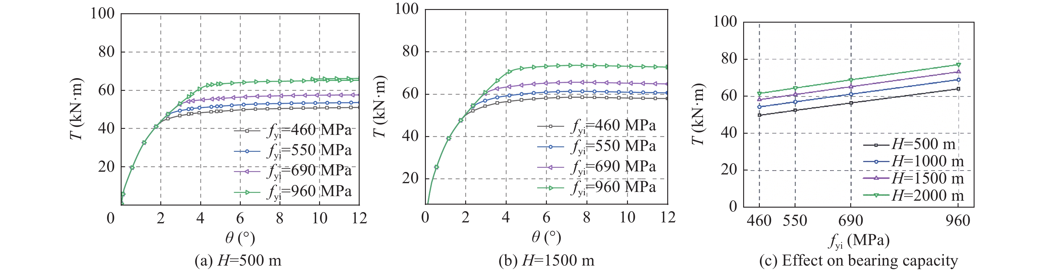 The recently developed SCCDS composite tube, a novel variant of the pipe-in-pipe (PIP) structure, demonstrates strong potential for subsea pipeline applications. However, theoretical research regarding its structural behavior under compression-torsion loading and bearing capacity calculations remains limited, particularly concerning the influence of dual hydraulic pressures during operation. This study examines the impact of dual hydraulic pressures on the compressive-torsional behavior of SCCDS composite tubes. A finite element (FE) model was developed and validated against experimental results, comparing failure modes, full-range loading curves, and bearing capacity to elucidate the working mechanism under dual pressures. A parametric study was then conducted to examine the effects of geometric-physical parameters. Results demonstrate that dual pressures substantially enhance the bearing capacity of sandwich concrete by increasing the normal contact stress at the interface. Increasing concrete strength (fc) provides minimal enhancement to torsional resistance compared to the yielding strengths of outer tube (fyo) and inner tube (fyi). Higher diameter-to-thickness ratios of outer tube (Do/to) and inner tube (Di/ti) significantly reduce torsional capacity. At 1000 m water depth, increasing the Do/to ratio from 27.5 to 36.67, 55, and 110 reduces bearing capacity by 11.17%, 23.08%, and 36.14% respectively. Strict measures should be implemented to prevent substantial reductions in strength and ductility for SCCDS composite tubes with large hollow ratios (e.g., χ=0.849) or high axial compression ratios (e.g., n=0.8). The study proposes a modified calculation method for determining N-T curves that incorporates dual hydraulic pressure effects, providing guidance for performance evaluation of novel SCCDS composite tubes in deep-sea engineering.
