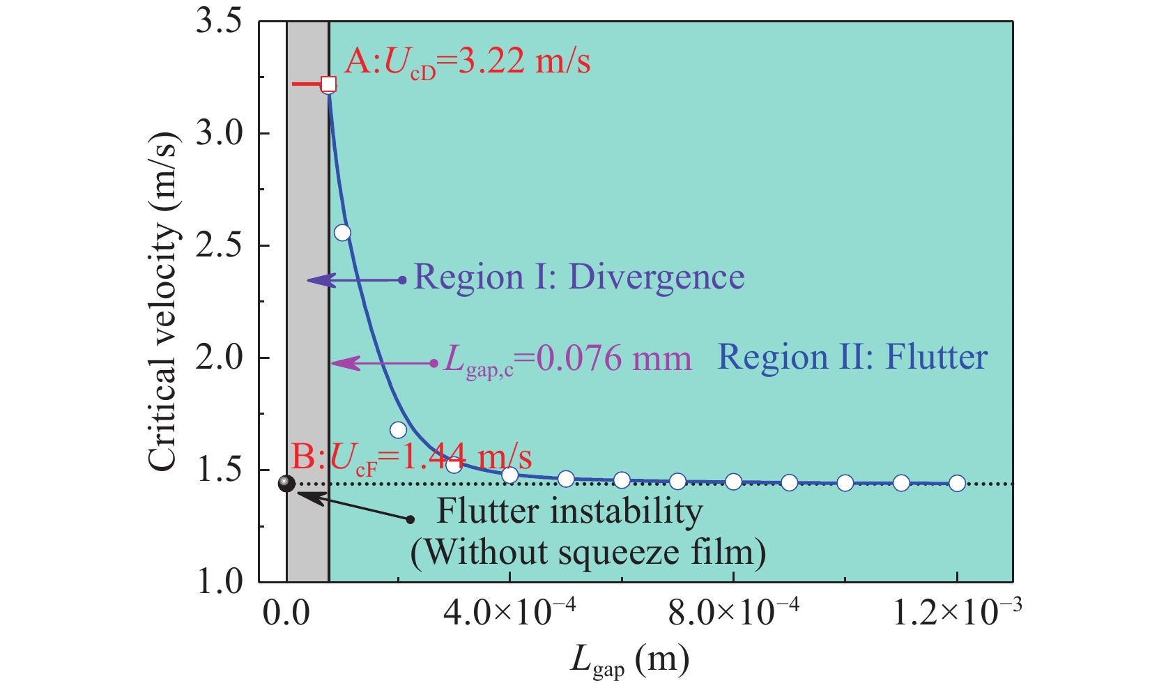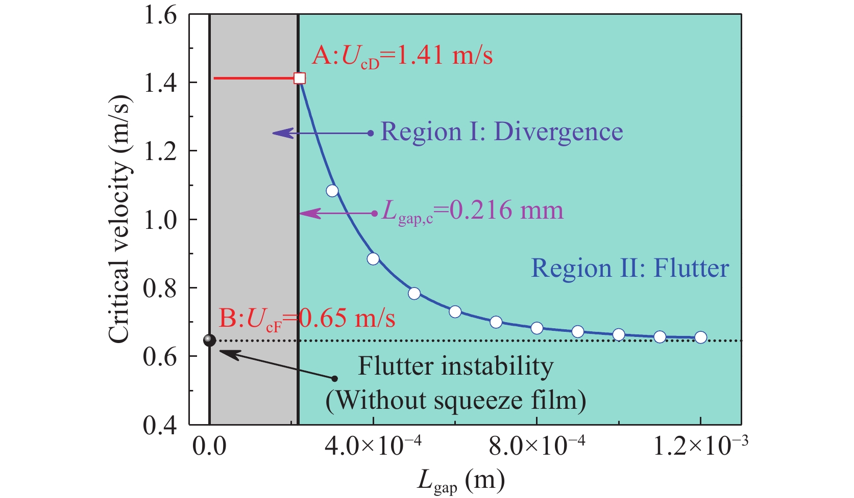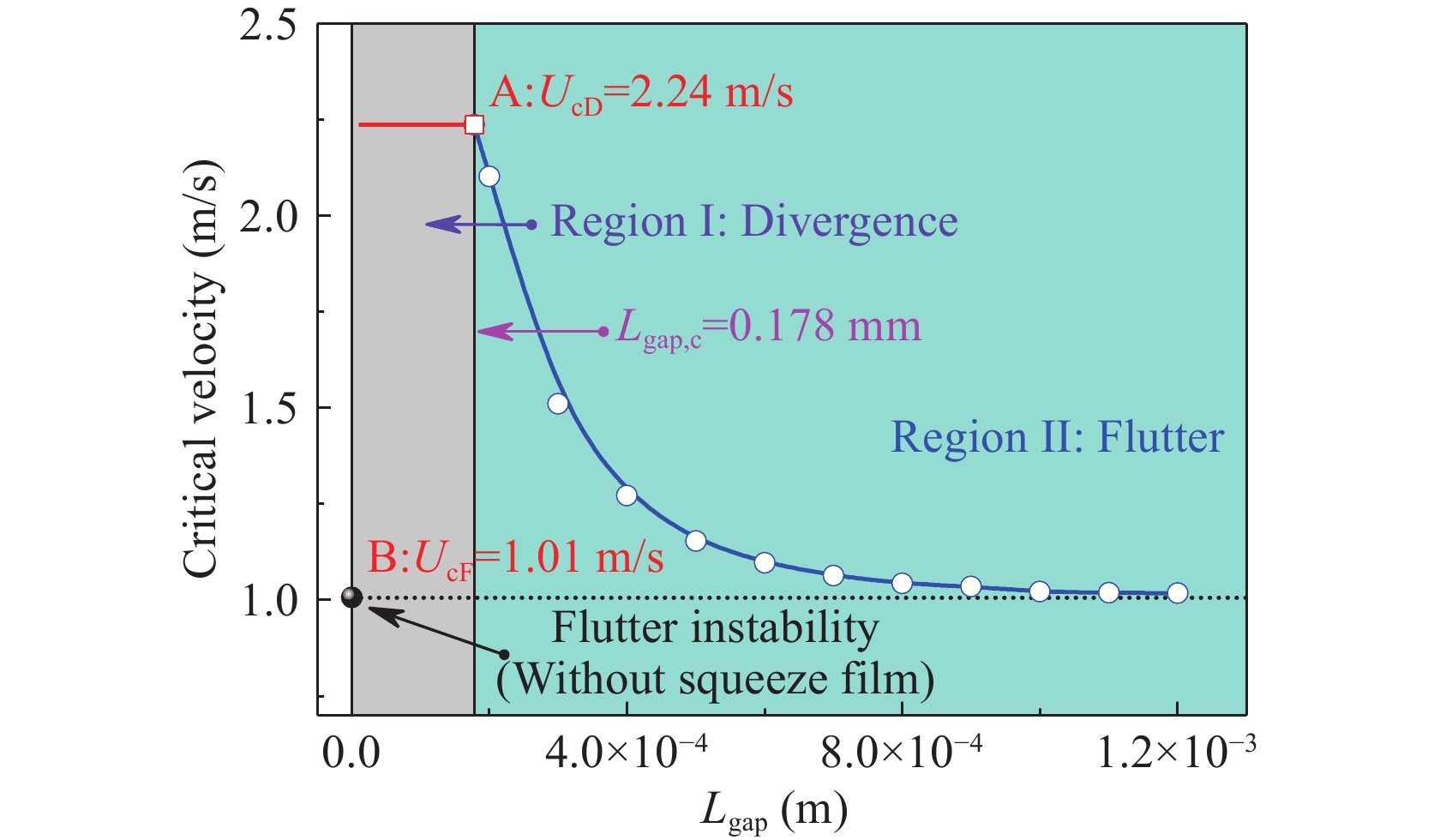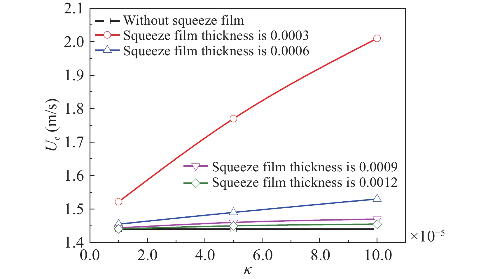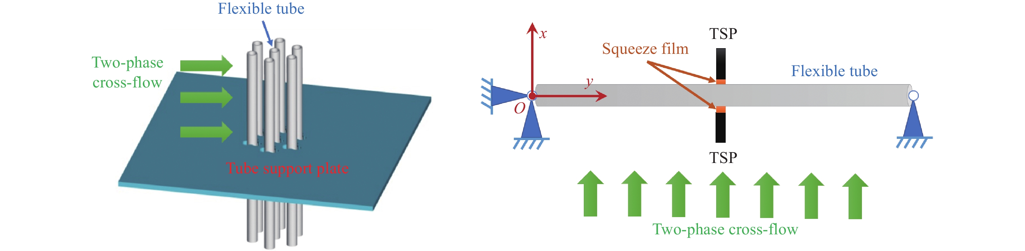 The influence of the squeeze film between the tube and the support structure on flow-induced vibrations is a critical factor in tube bundles subjected to two-phase cross-flow. This aspect can significantly alter the threshold for fluidelastic instability and affect heat transfer efficiency. This paper presents a mathematical model incorporating the squeeze film force between the tube and the support structure. We aim to clarify the mechanisms underlying fluidelastic instability in tube bundle systems exposed to two-phase flow. Using a self-developed computer program, we performed numerical calculations to examine the influence of the squeeze film on the threshold of fluidelastic instability in the tube bundle system. Furthermore, we analyzed how the thickness and length of the squeeze film affect both the underlying mechanisms and the critical velocity of fluidelastic instability.