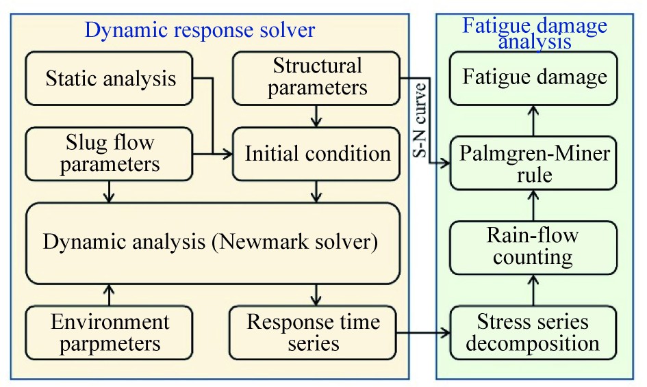 This study examines the slug-induced vibration (SIV) response and fatigue behavior of offshore risers subjected to internal slug flow. A structural model incorporating internal slug flow dynamics is developed using the Absolute Nodal Coordinate Formulation (ANCF) and a spatial-temporal density variation equation to analyze how slug flow parameters affect the SIV response of risers. Structural displacement, stress, and fatigue responses are systematically evaluated to characterize the structural behavior under SIV conditions. Longer slugs induce more pronounced traveling wave characteristics, while shorter slugs facilitate a mixed traveling-standing wave mode. Moreover, higher slug frequencies lead to increased fatigue accumulation, especially over an extended touchdown zone, thereby compromising the structural integrity of the riser. The findings yield valuable insights into the dynamic interactions between slug flow and riser response. This research advances the understanding of SIV mechanisms and provides a theoretical foundation for fatigue assessment and structural optimization, contributing to the safe and efficient design of offshore risers in deepwater environments.