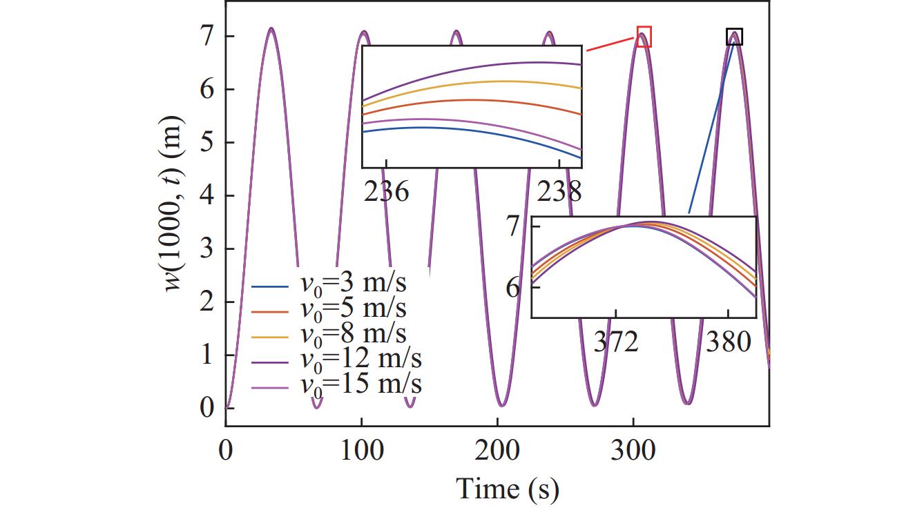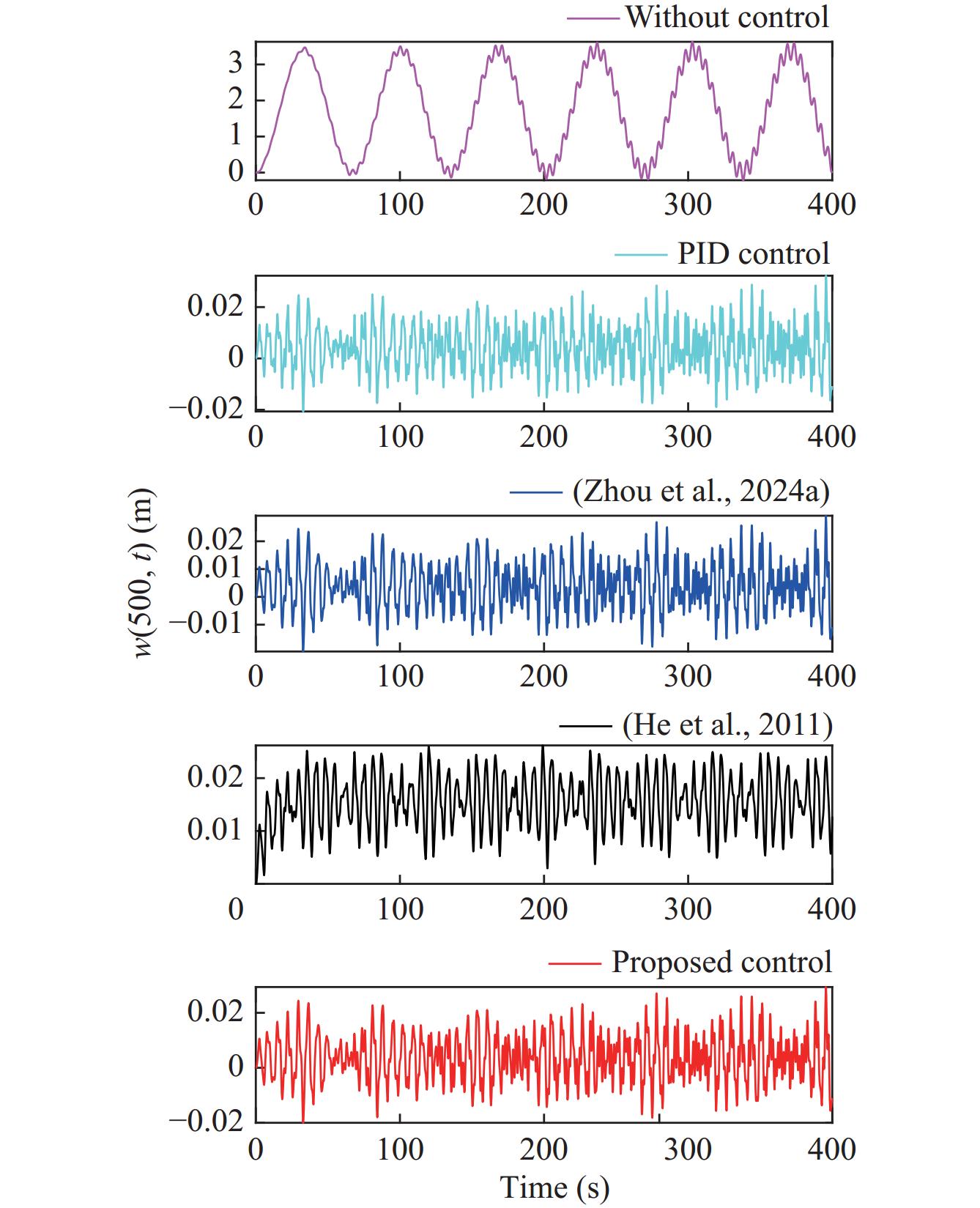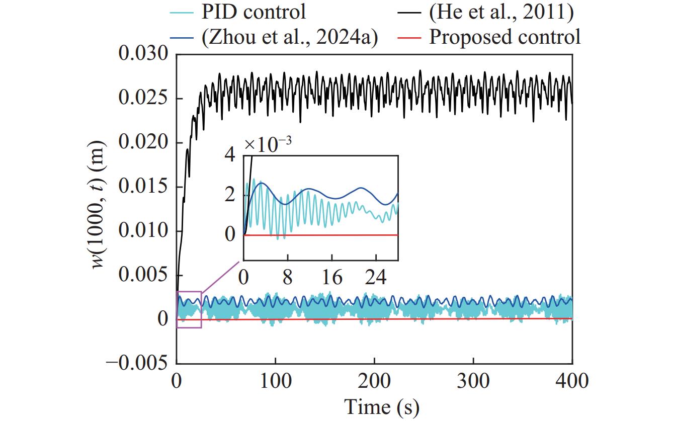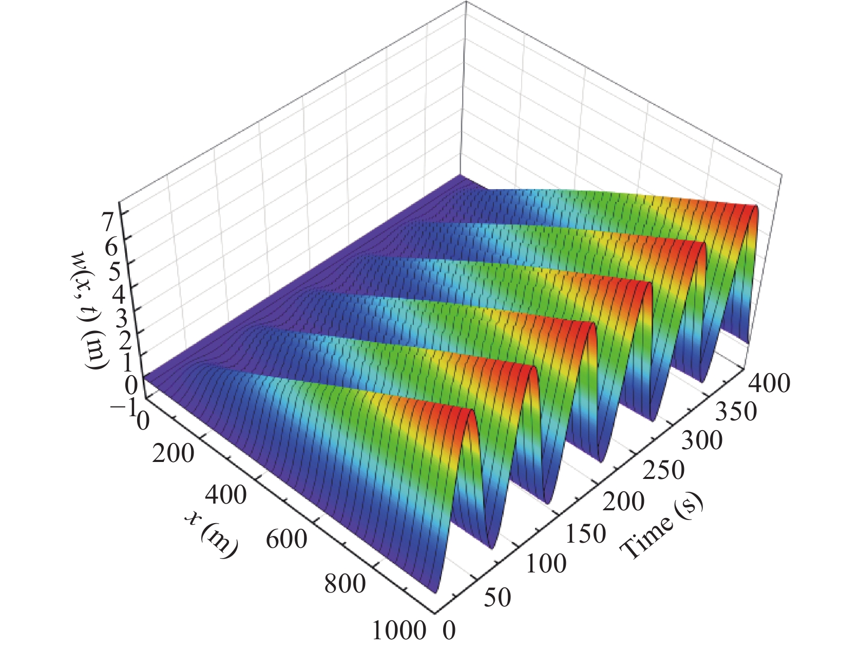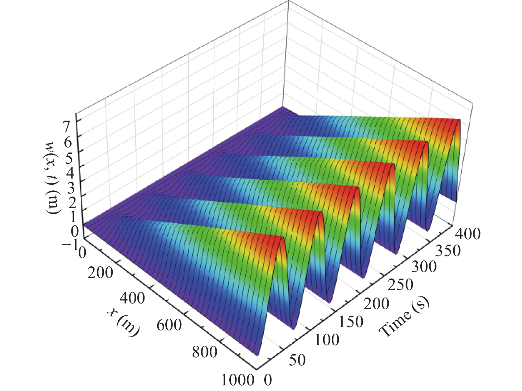 This study examines the adaptive boundary control problem of flexible marine riser with internal flow coupling. The dynamic model of the flexible marine riser system with internal flow coupling is derived using the Hamiltonian principle. An analysis of internal flow’s influence on the vibration characteristics of flexible marine risers is conducted. Then, for the uncertain environmental disturbance, the adaptive fuzzy logic system is introduced to dynamically approximate the boundary disturbance, and a robust adaptive fuzzy boundary control is proposed. The uniform boundedness of the closed-loop system is proved based on Lyapunov theory. The well-posedness of the closed-loop system is proved by operator semigroup theory. The proposed control’s effectiveness is validated through comparison with existing control methods.