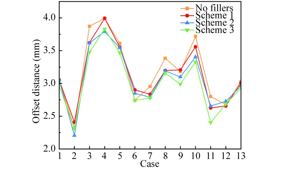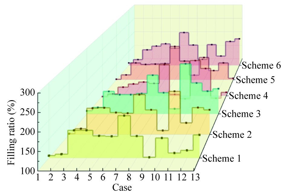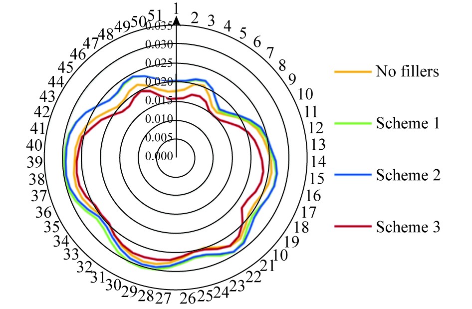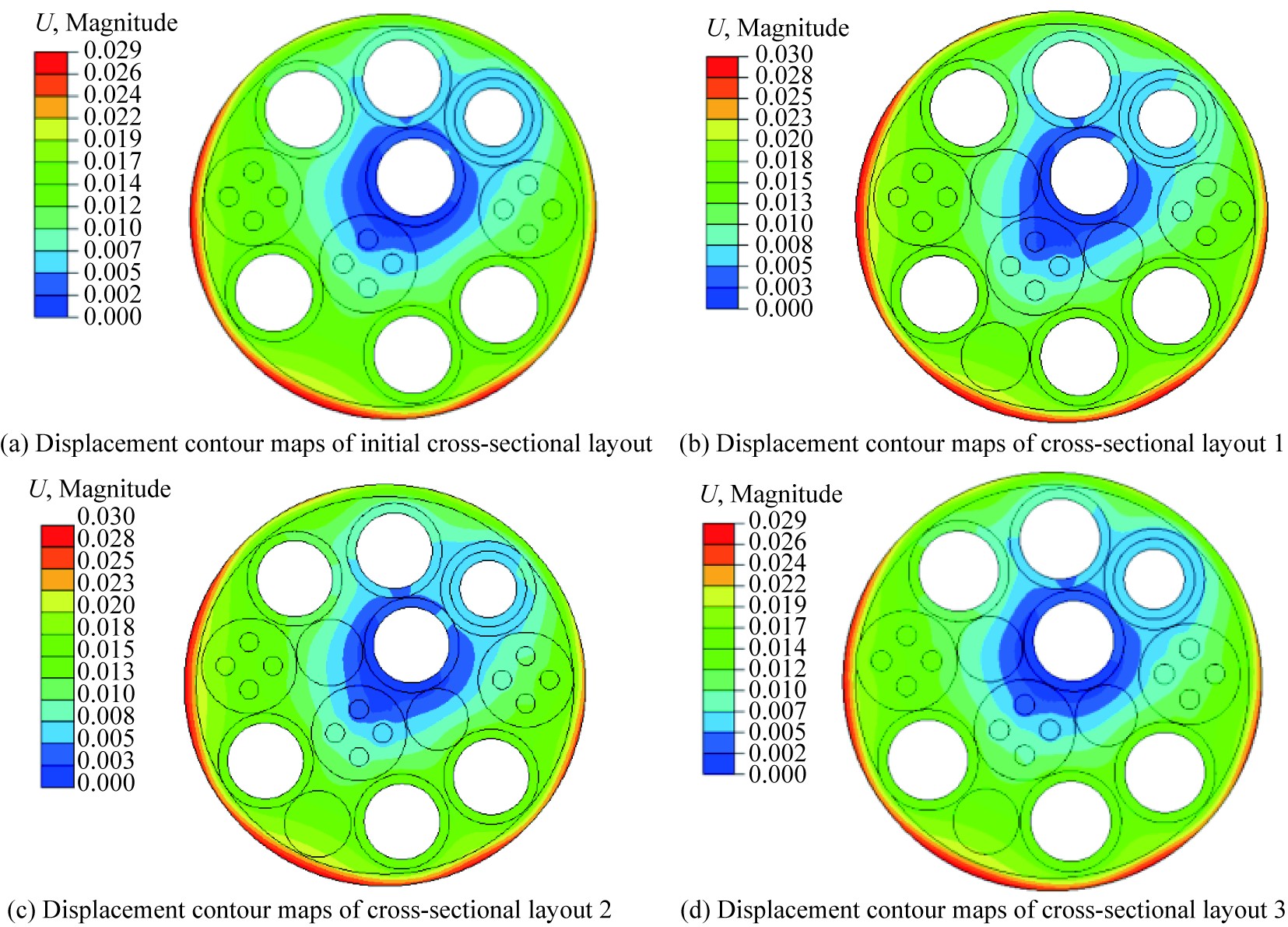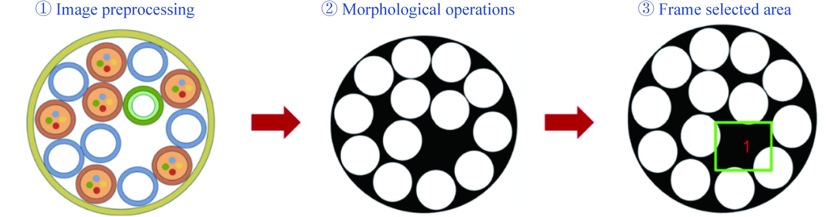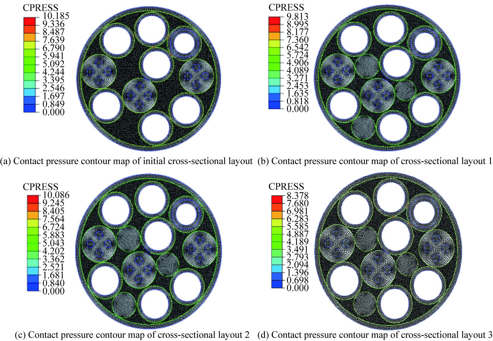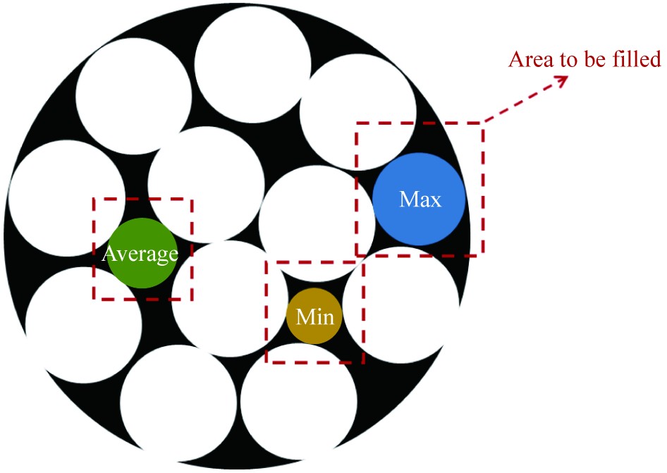 The umbilical, a key component in offshore energy extraction, plays a vital role in ensuring the stable operation of the entire production system. The extensive variety of cross-sectional components creates highly complex layout combinations. Furthermore, due to constraints in component quantity and geometry within the cross-sectional layout, filler bodies must be incorporated to maintain cross-section performance. Conventional design approaches based on manual experience suffer from inefficiency, high variability, and difficulties in quantification. This paper presents a multi-level automatic filling optimization design method for umbilical cross-sectional layouts to address these limitations. Initially, the research establishes a multi-objective optimization model that considers compactness, balance, and wear resistance of the cross-section, employing an enhanced genetic algorithm to achieve a near-optimal layout. Subsequently, the study implements an image processing-based vacancy detection technique to accurately identify cross-sectional gaps. To manage the variability and diversity of these vacant regions, the research introduces a multi-level filling method that strategically selects and places filler bodies of varying dimensions, overcoming the constraints of uniform-size fillers. Additionally, the method incorporates a hierarchical strategy that subdivides the complex cross-section into multiple layers, enabling layer-by-layer optimization and filling. This approach reduces manufacturing equipment requirements while ensuring practical production process feasibility. The methodology is validated through a specific umbilical case study. The results demonstrate improvements in compactness, balance, and wear resistance compared with the initial cross-section, offering novel insights and valuable references for filler design in umbilical cross-sections.